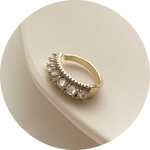 Our magnificent adjustable chic ring is made with great attention to detail. The bright golden band has always been a symbol of status and class. Its white crystals look like stars which shine almost as bright as your smile. Wear this ring with any outfit and enjoy the compliments!