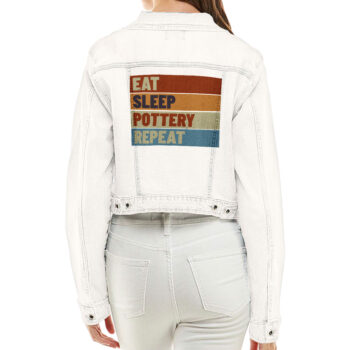 Eat Sleep Pottery Cropped Women’s Denim Jacket – Gifts for Wife – Pottery Lover Gifts for Girls