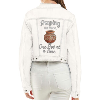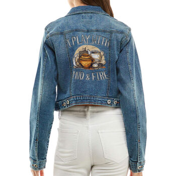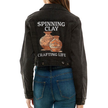 Pottery Themed Cropped Women’s Denim Jacket – Great Gifts – Items for Pottery Lovers