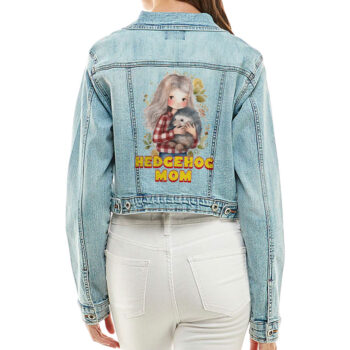Hedgehog Mom Cropped Women’s Denim Jacket – Gifts for Girlfriend – Hedgehog Themed Items