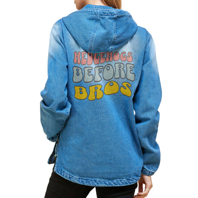 Cute Hedgehog Ladies’ Denim Jacket with Fleece Hoodie – Cool Items – Hedgehog Lover Items for Girls