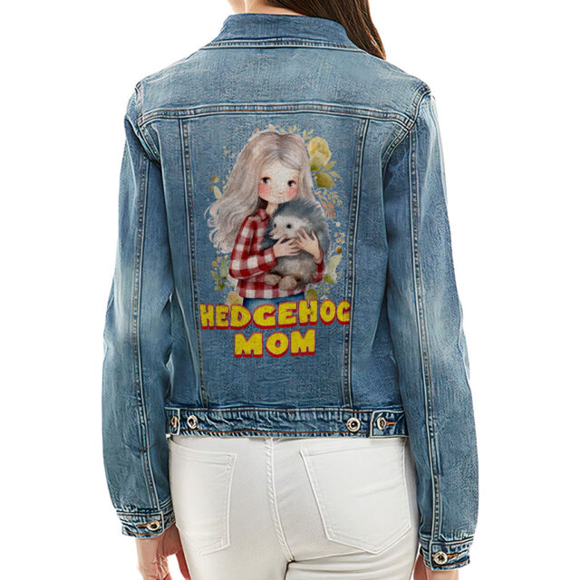 Hedgehog Mom Women’s Denim Jacket – Gifts for Girlfriend – Hedgehog Themed Items